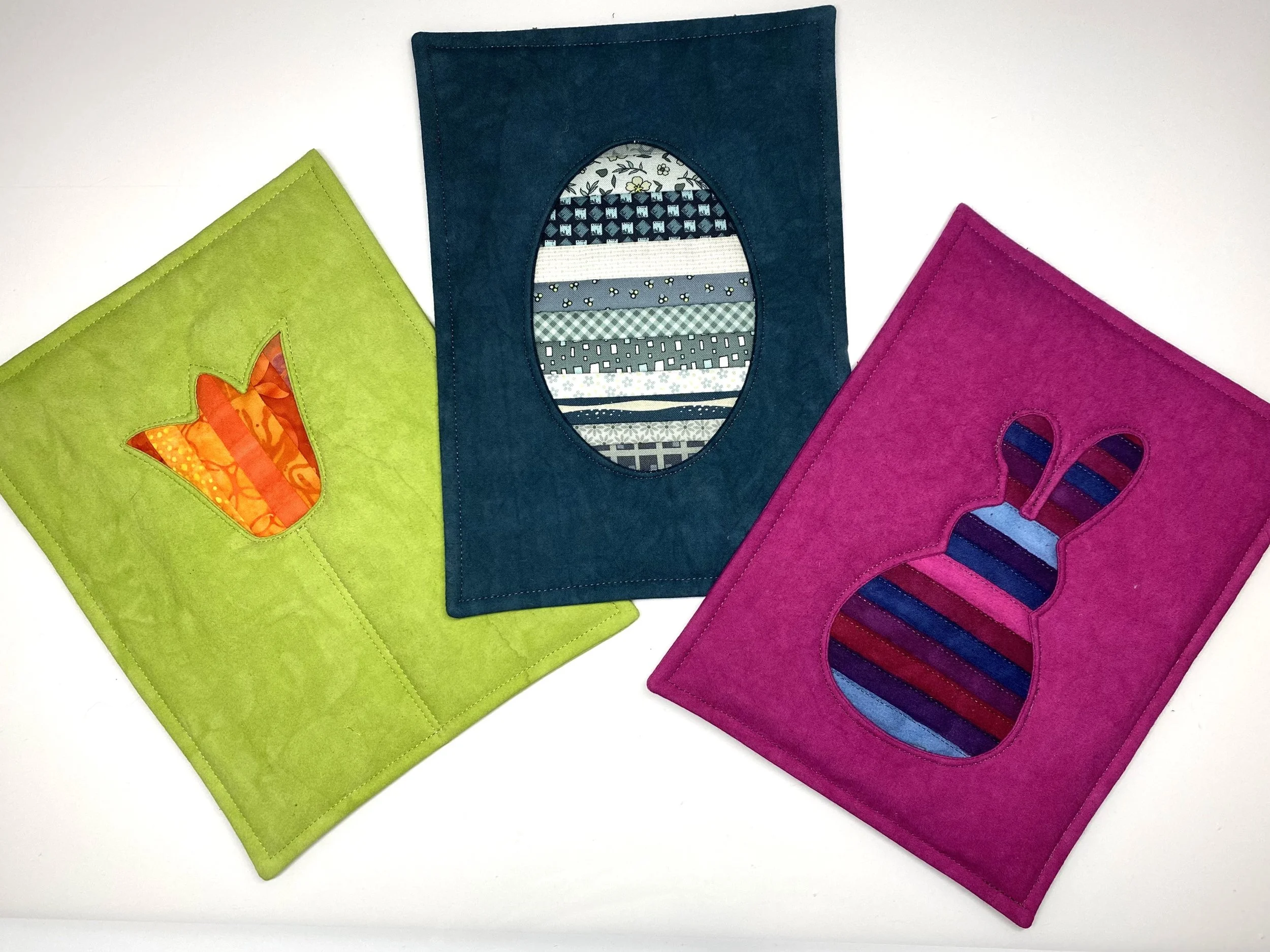 Enough time and scraps were available to complete three inside-out mug rugs. Each finished at 7 X 9 inches. The quick no binding-needed finish of this project is a huge plus when you need a quick gift or holiday decor. I’m linked up to the challenge here.