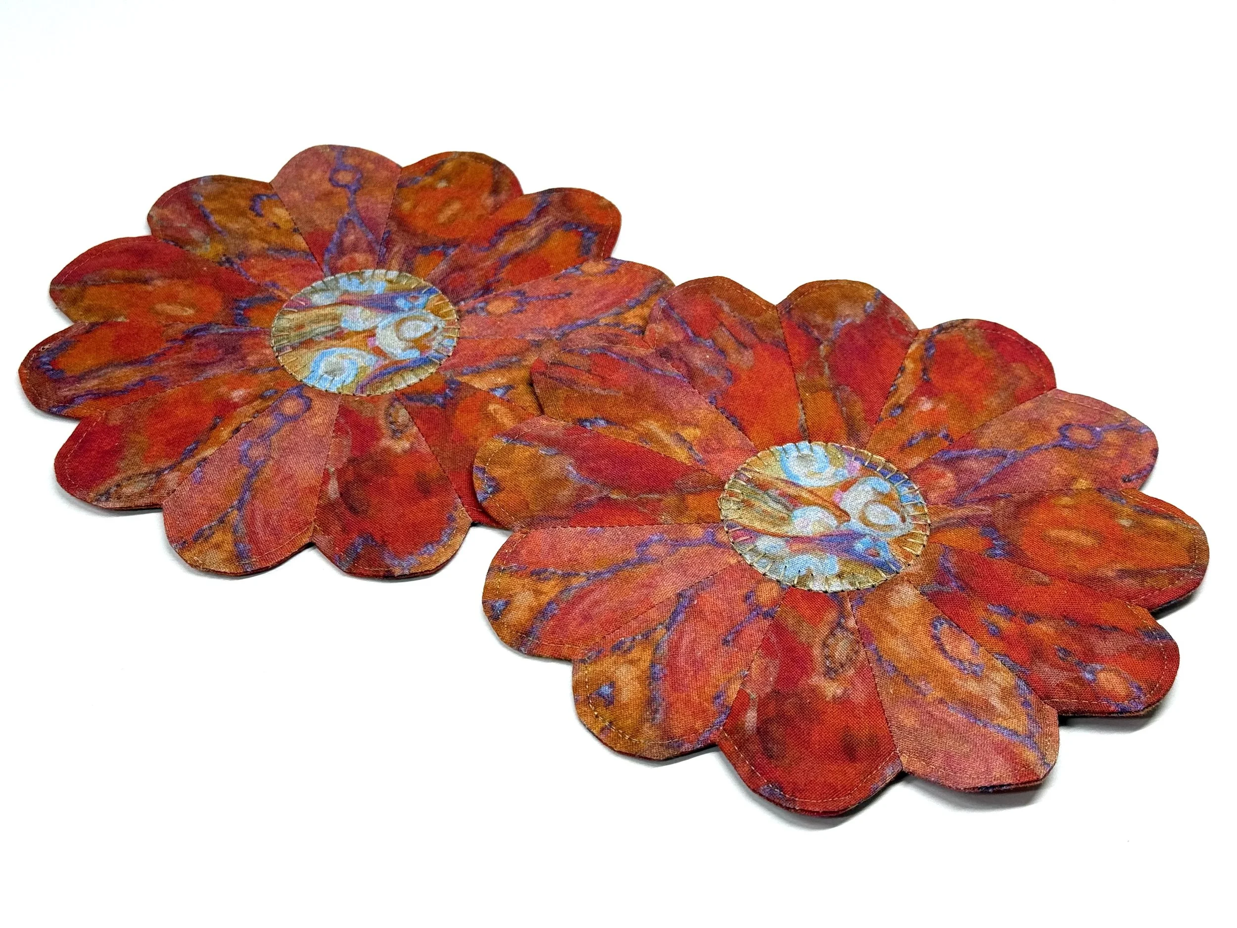 The center circle fabric was cut after applying MistyFuse to the wrong side.